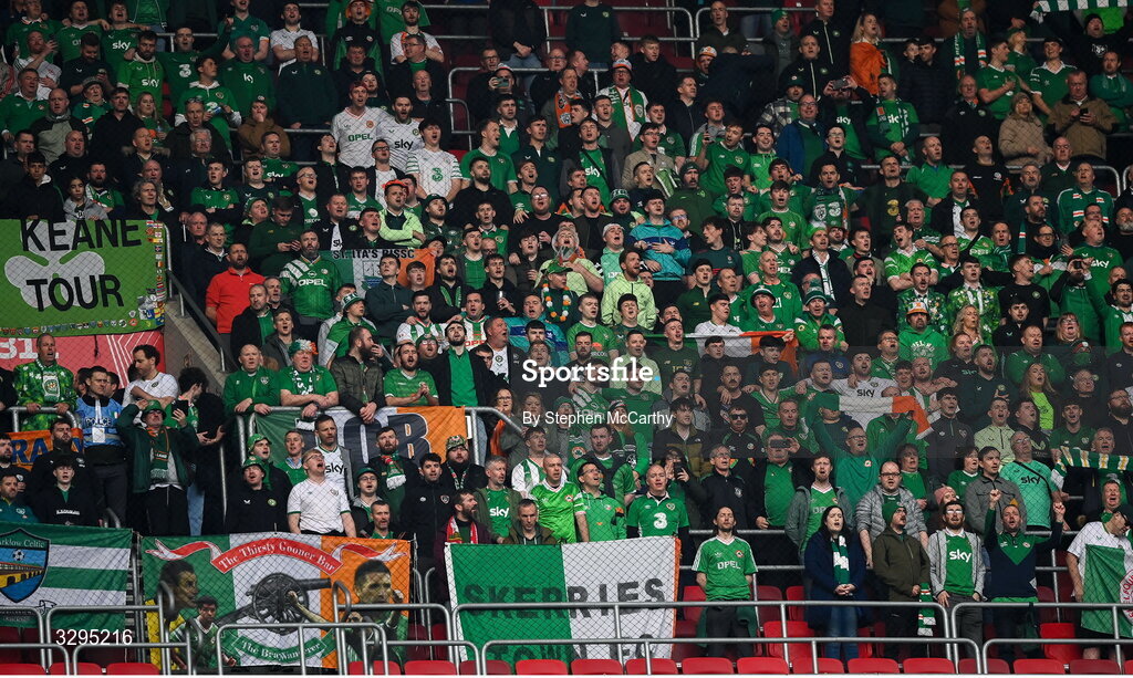 16 November 2025; Republic of Ireland supporters before the FIFA World Cup 2026 Group F Qualifier match between Hungary and Republic of Ireland at Puskás Aréna in Budapest, Hungary. Photo by Stephen McCarthy/Sportsfile