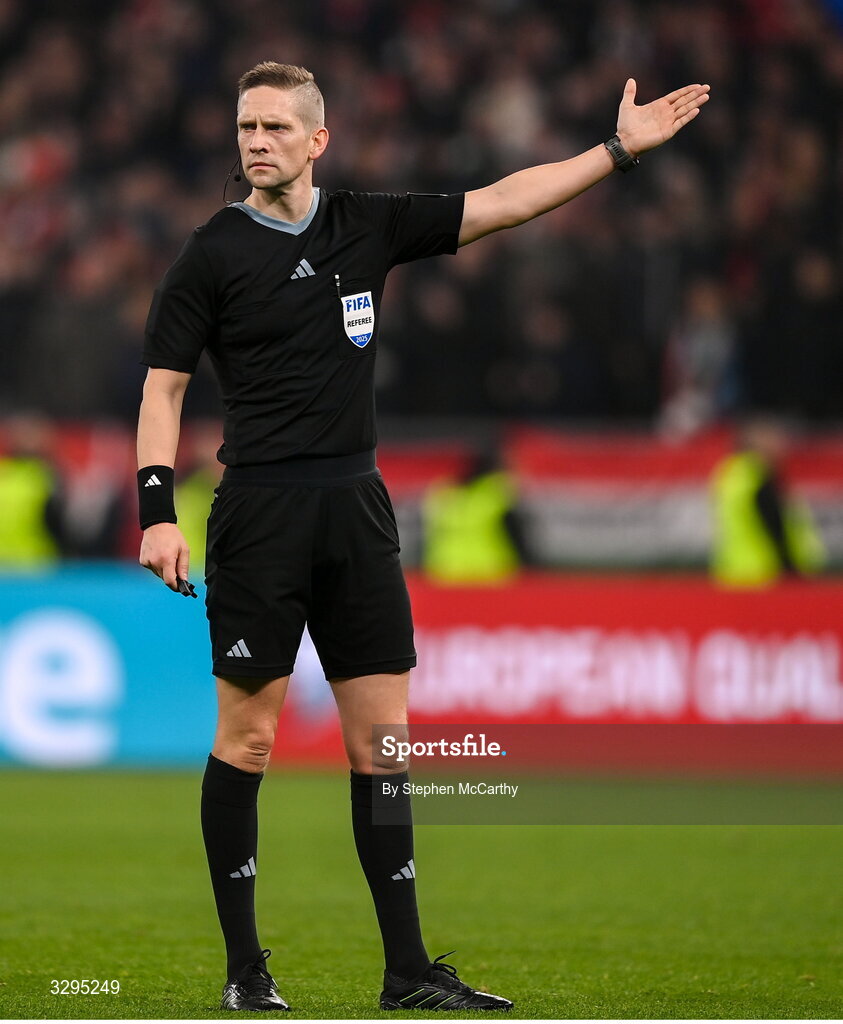 16 November 2025; Referee Espen Eskas during the FIFA World Cup 2026 Group F Qualifier match between Hungary and Republic of Ireland at Puskás Aréna in Budapest, Hungary. Photo by Stephen McCarthy/Sportsfile