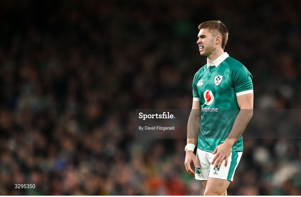 15 November 2025; Jack Crowley of Ireland during the Quilter Nations Series 2025 match between Ireland and Australia at the Aviva Stadium in Dublin. Photo by David Fitzgerald/Sportsfile