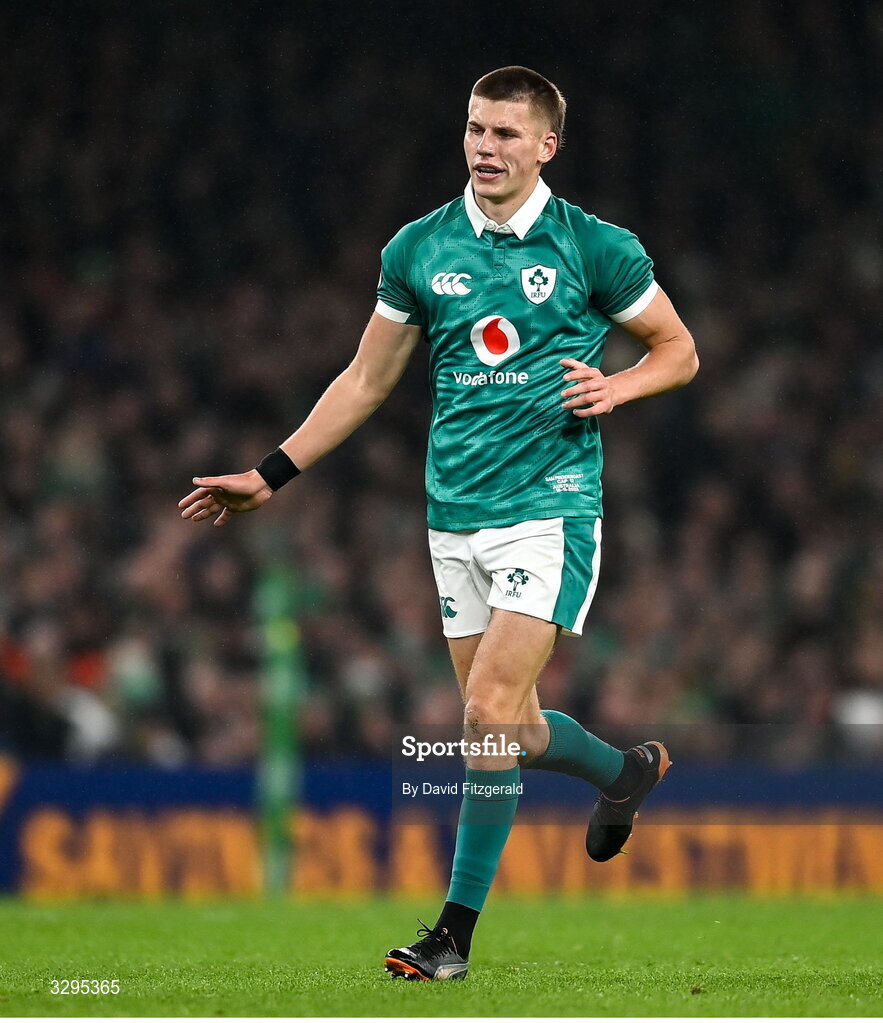 15 November 2025; Sam Prendergast of Ireland during the Quilter Nations Series 2025 match between Ireland and Australia at the Aviva Stadium in Dublin. Photo by David Fitzgerald/Sportsfile