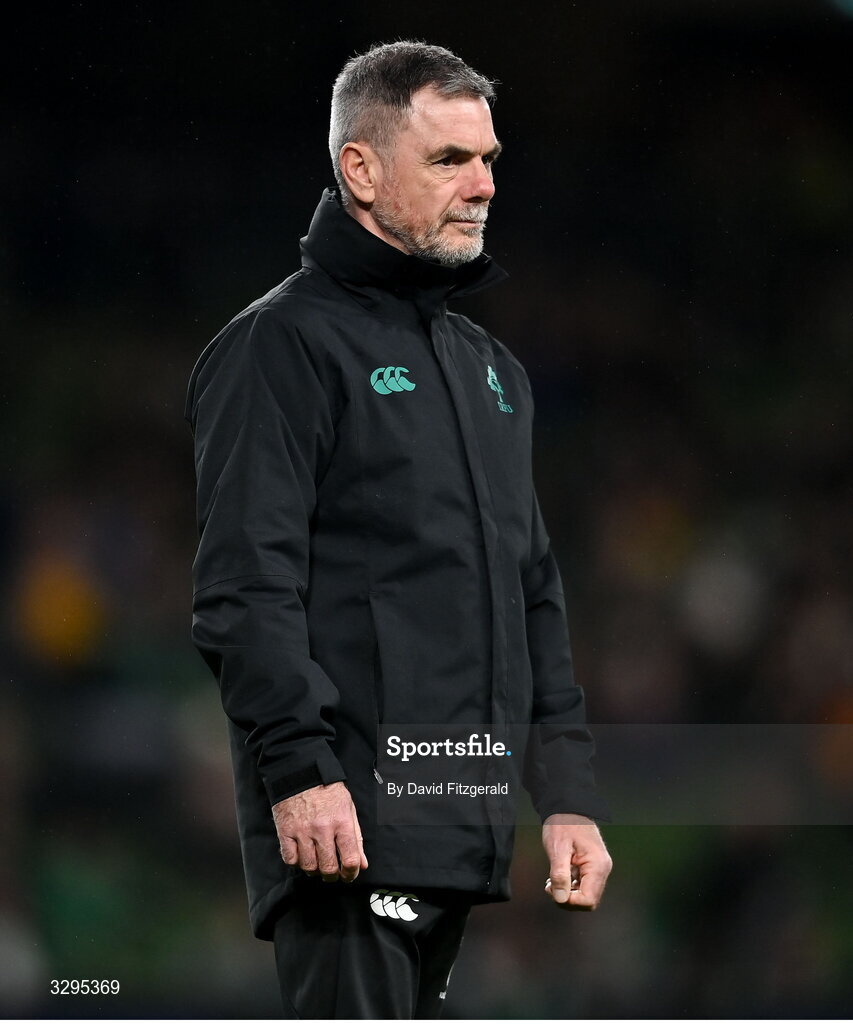 15 November 2025; Ireland mental skills coach Gary Keegan before during the Quilter Nations Series 2025 match between Ireland and Australia at the Aviva Stadium in Dublin. Photo by David Fitzgerald/Sportsfile
