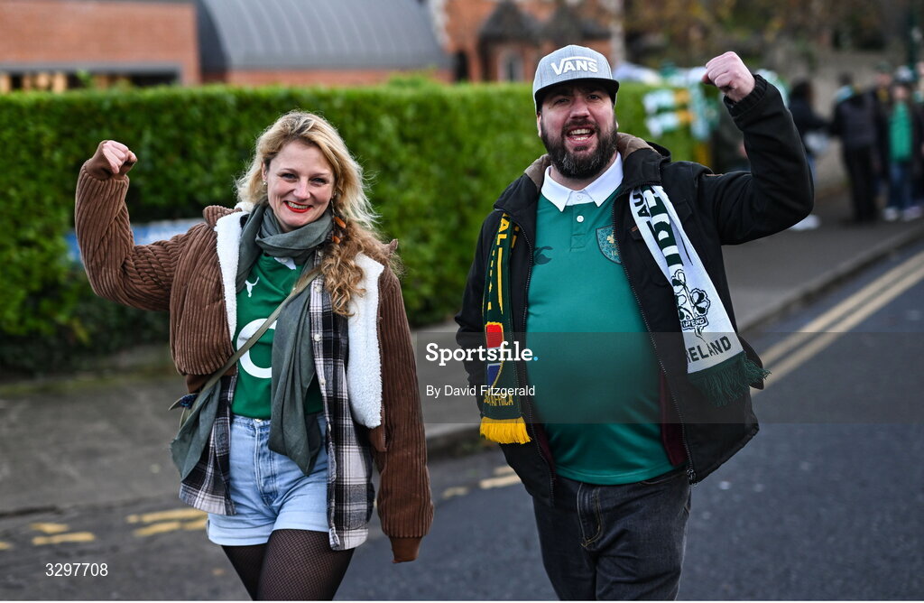 22 November 2025; Ireland supporters before the Quilter Nations Series 2025 match between Ireland and South Africa at the Aviva Stadium in Dublin. Photo by David Fitzgerald/Sportsfile