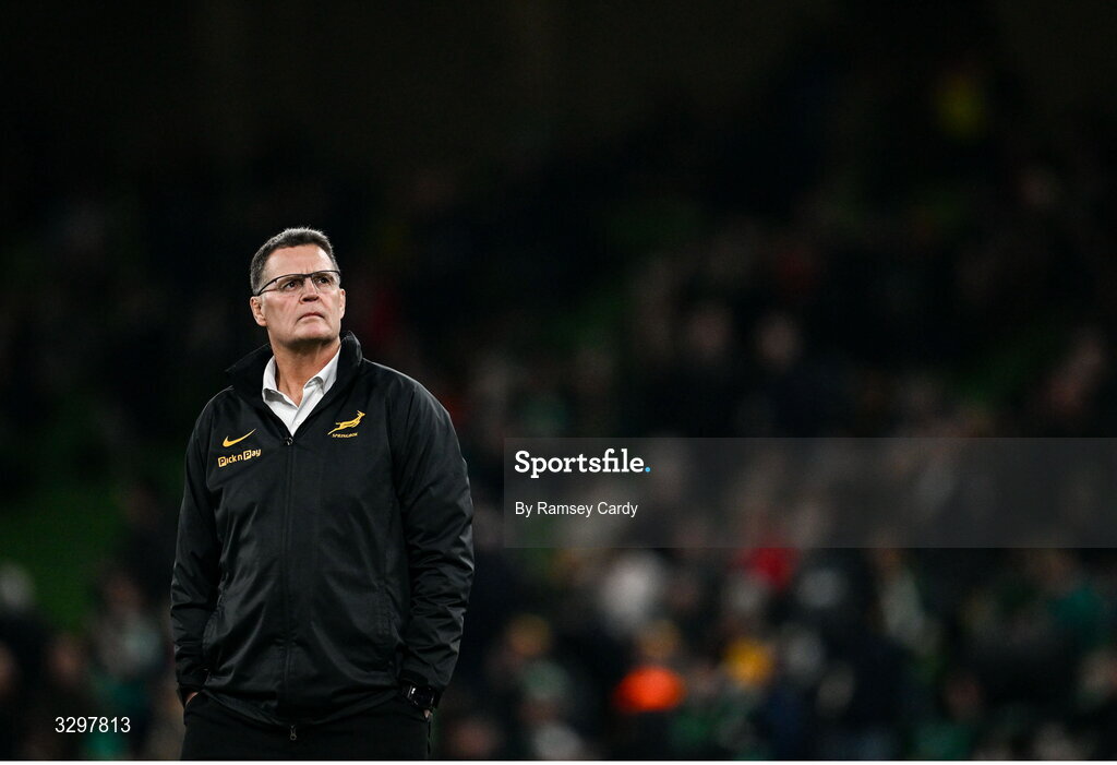 22 November 2025; South Africa head coach Rassie Erasmus before the Quilter Nations Series 2025 match between Ireland and South Africa at the Aviva Stadium in Dublin. Photo by Ramsey Cardy/Sportsfile