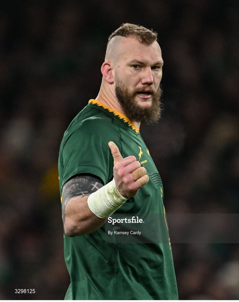 22 November 2025; RG Snyman of South Africa during the Quilter Nations Series 2025 match between Ireland and South Africa at the Aviva Stadium in Dublin. Photo by Ramsey Cardy/Sportsfile