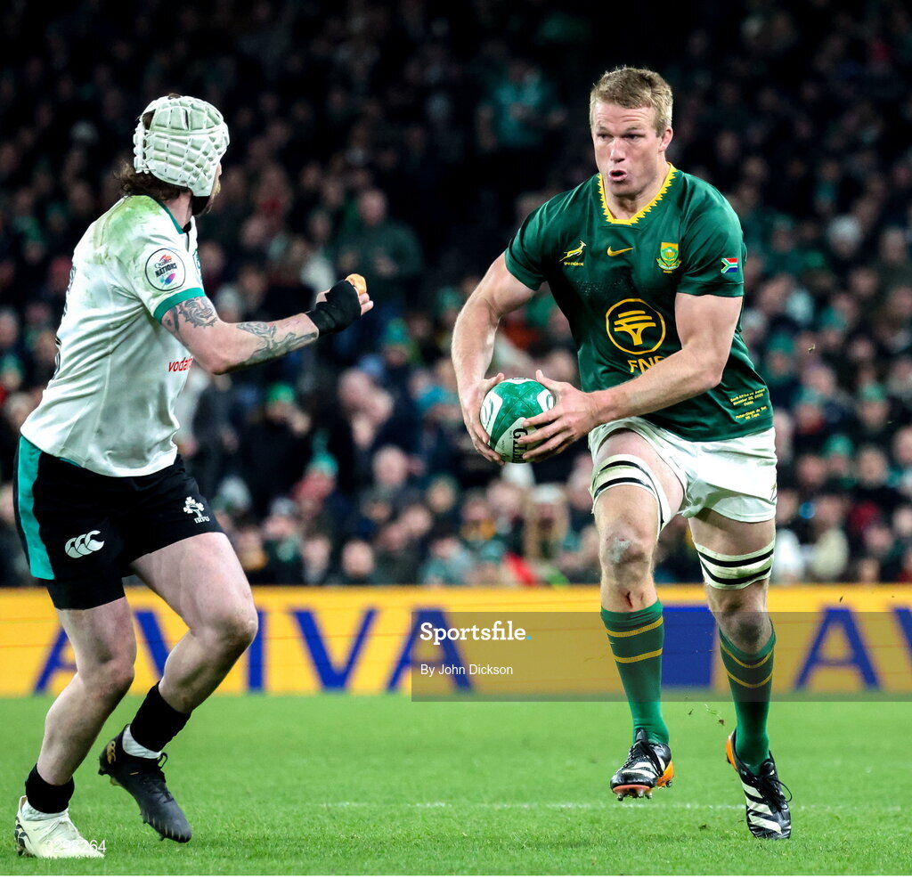 22 November 2025; Pieter-Steph du Toit of South Africa in action during the Quilter Nations Series 2025 match between Ireland and South Africa at the Aviva Stadium in Dublin. Photo by John Dickson/Sportsfile