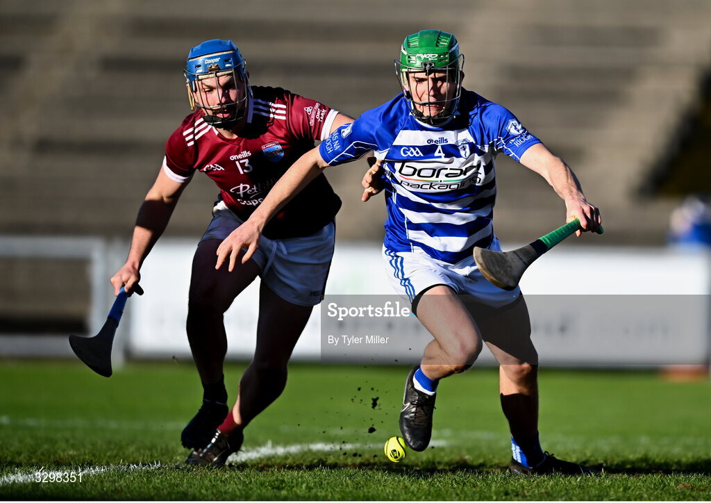 23 November 2025; Peter O'Donoghue of Naas in action against Michael Coleman of St Martin's during the AIB Leinster GAA Hurling Senior Club Championship semi-final match between St Martin's and Naas at Chadwicks Wexford Park in Wexford. Photo by Tyler Miller/Sportsfile