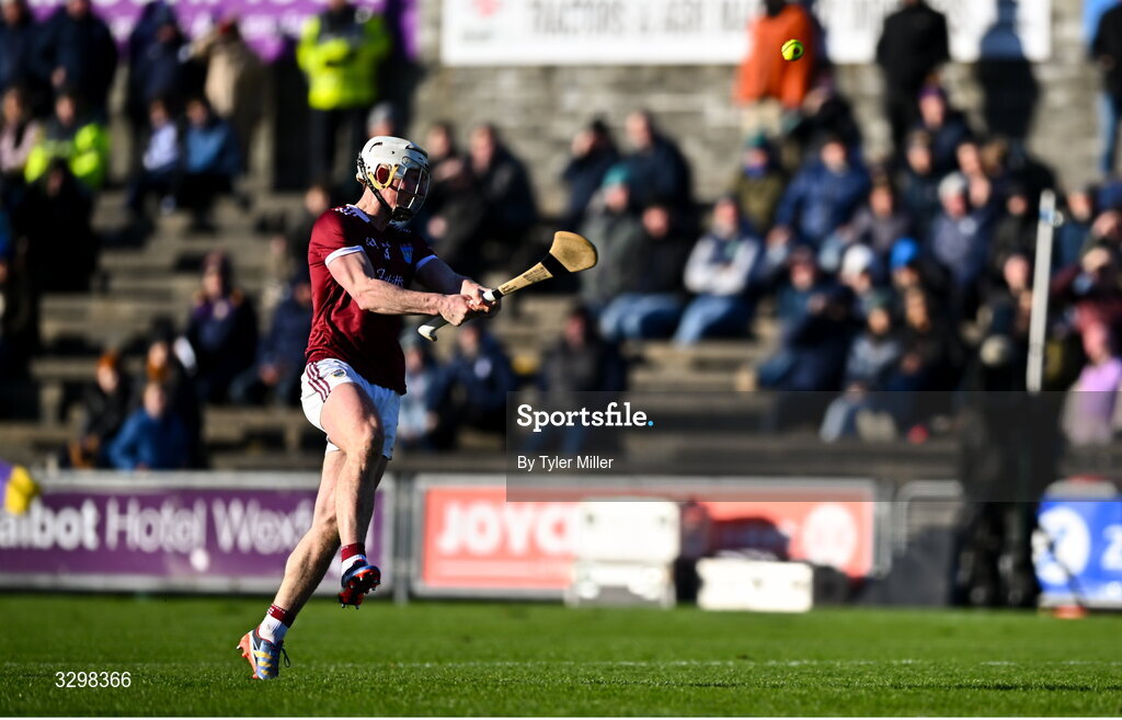 23 November 2025; Aaron Maddock of St Martin's scores a point during the AIB Leinster GAA Hurling Senior Club Championship semi-final match between St Martin's and Naas at Chadwicks Wexford Park in Wexford. Photo by Tyler Miller/Sportsfile