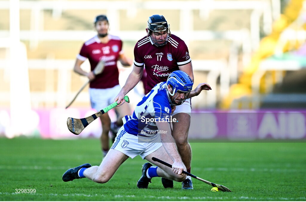 23 November 2025; Daire Guerin of Naas in action against Ben Maddock of St Martin's during the AIB Leinster GAA Hurling Senior Club Championship semi-final match between St Martin's and Naas at Chadwicks Wexford Park in Wexford. Photo by Tyler Miller/Sportsfile
