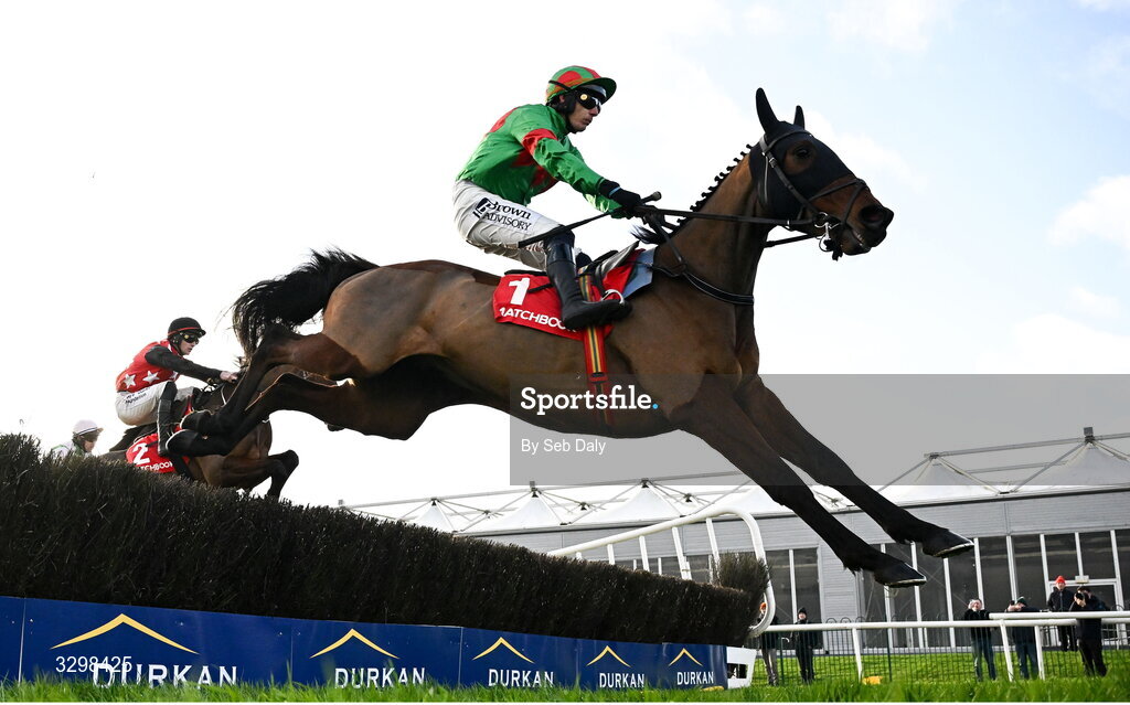 23 November 2025; Westport Cove, with Paul Townend up, jumps the first on their way to winning the Matchbook Betting Exchange Craddockstown Novice Steeplechase during day two of the Punchestown Premiere Weekend at Punchestown Racecourse in Kildare. Photo by Seb Daly/Sportsfile