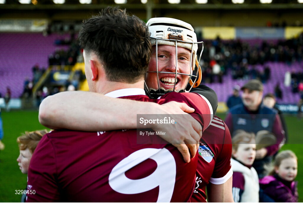 23 November 2025; Aaron Maddock, right, and Michael Codd of St Martin's after the AIB Leinster GAA Hurling Senior Club Championship semi-final match between St Martin's and Naas at Chadwicks Wexford Park in Wexford. Photo by Tyler Miller/Sportsfile