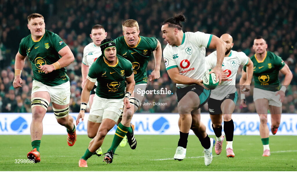 22 November 2025; James Lowe of Ireland in action during the Quilter Nations Series 2025 match between Ireland and South Africa at the Aviva Stadium in Dublin. Photo by John Dickson/Sportsfile