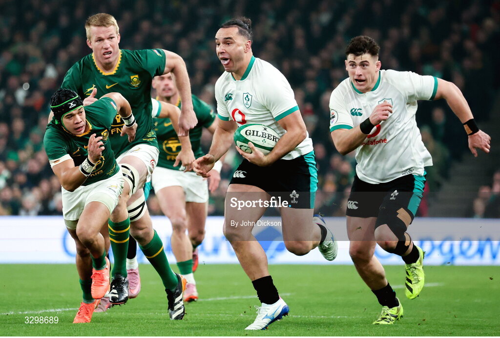 22 November 2025; James Lowe of Ireland in action during the Quilter Nations Series 2025 match between Ireland and South Africa at the Aviva Stadium in Dublin. Photo by John Dickson/Sportsfile