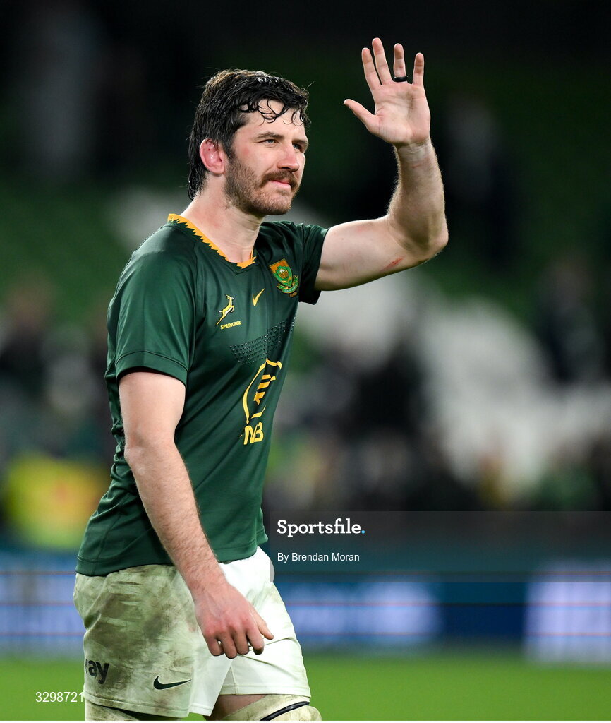 22 November 2025; Ruan Nortje of South Africa after the Quilter Nations Series 2025 match between Ireland and South Africa at the Aviva Stadium in Dublin. Photo by Brendan Moran/Sportsfile