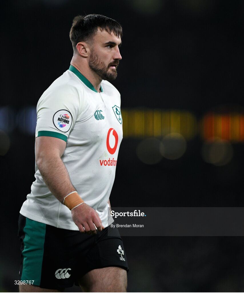 22 November 2025; Rónan Kelleher of Ireland during the Quilter Nations Series 2025 match between Ireland and South Africa at the Aviva Stadium in Dublin. Photo by Brendan Moran/Sportsfile