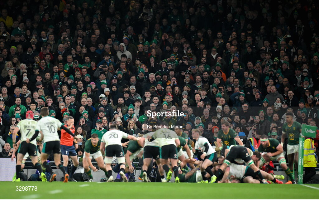 22 November 2025; Supporters look on during the Quilter Nations Series 2025 match between Ireland and South Africa at the Aviva Stadium in Dublin. Photo by Brendan Moran/Sportsfile