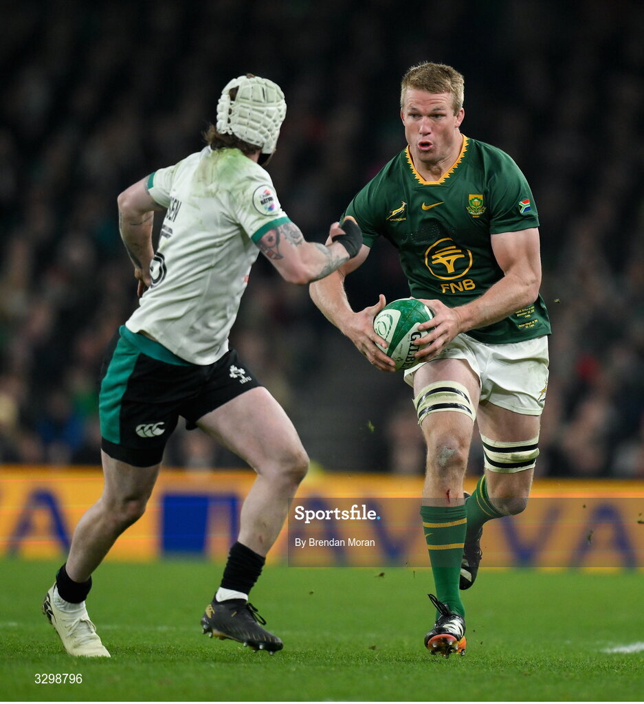 22 November 2025; Pieter-Steph du Toit of South Africa during the Quilter Nations Series 2025 match between Ireland and South Africa at the Aviva Stadium in Dublin. Photo by Brendan Moran/Sportsfile