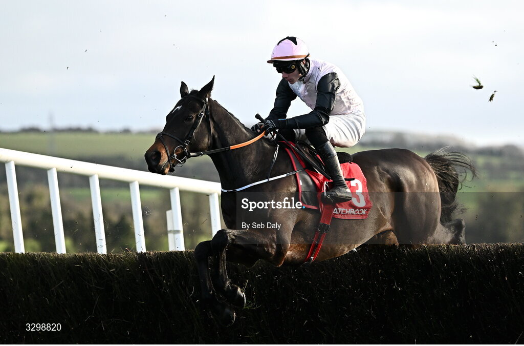 23 November 2025; Relieved Of Duties, with Danny Gilligan up, during the Matchbook Betting Exchange Craddockstown Novice Steeplechase on day two of the Punchestown Premiere Weekend at Punchestown Racecourse in Kildare. Photo by Seb Daly/Sportsfile