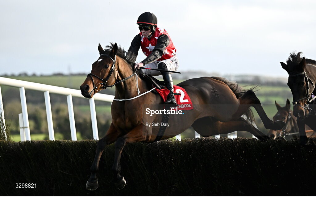23 November 2025; Fleur In The Park, with Cian Michael Quirke up, during the Matchbook Betting Exchange Craddockstown Novice Steeplechase on day two of the Punchestown Premiere Weekend at Punchestown Racecourse in Kildare. Photo by Seb Daly/Sportsfile