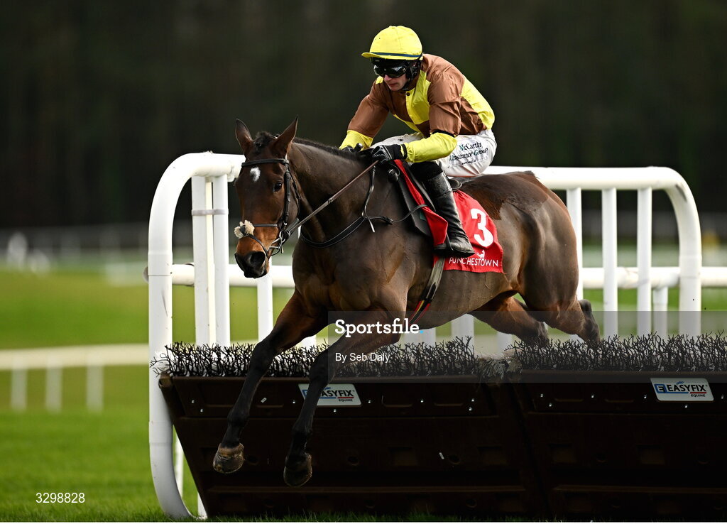 23 November 2025; Olympic Man, with Sean O'Keeffe up, during the Pertemps Network Group Handicap Hurdle Qualifier on day two of the Punchestown Premiere Weekend at Punchestown Racecourse in Kildare. Photo by Seb Daly/Sportsfile