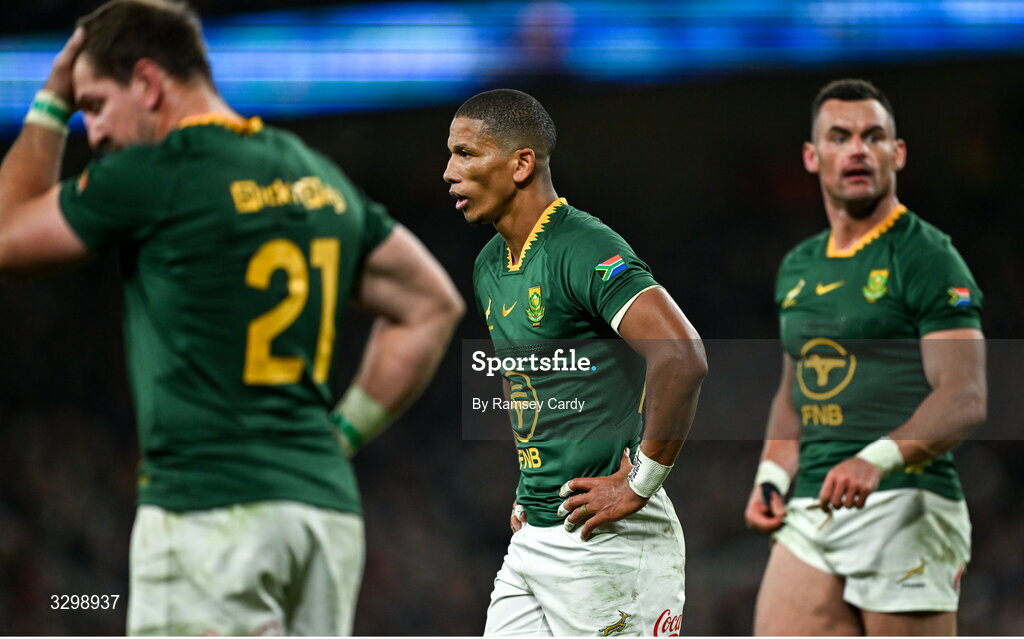 22 November 2025; Manie Libbok of South Africa during the Quilter Nations Series 2025 match between Ireland and South Africa at the Aviva Stadium in Dublin. Photo by Ramsey Cardy/Sportsfile