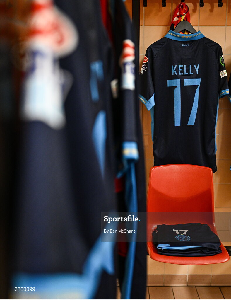 27 November 2025; The jersey of Daniel Kelly hangs in the Shelbourne dressing room before the UEFA Conference League 2025/26 league phase match between AZ Alkmaar and Shelbourne at AFAS Stadion in Alkmaar, Netherlands. Photo by Ben McShane/Sportsfile