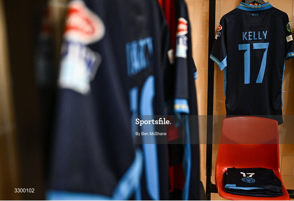 27 November 2025; The jersey of Daniel Kelly hangs in the Shelbourne dressing room before the UEFA Conference League 2025/26 league phase match between AZ Alkmaar and Shelbourne at AFAS Stadion in Alkmaar, Netherlands. Photo by Ben McShane/Sportsfile