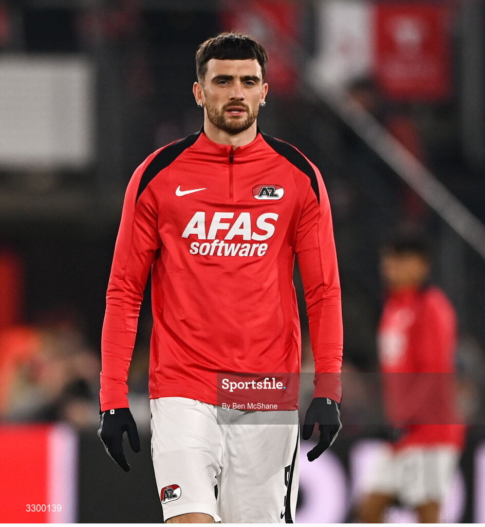 27 November 2025; Troy Parrott of AZ Alkmaar before the UEFA Conference League 2025/26 league phase match between AZ Alkmaar and Shelbourne at AFAS Stadion in Alkmaar, Netherlands. Photo by Ben McShane/Sportsfile