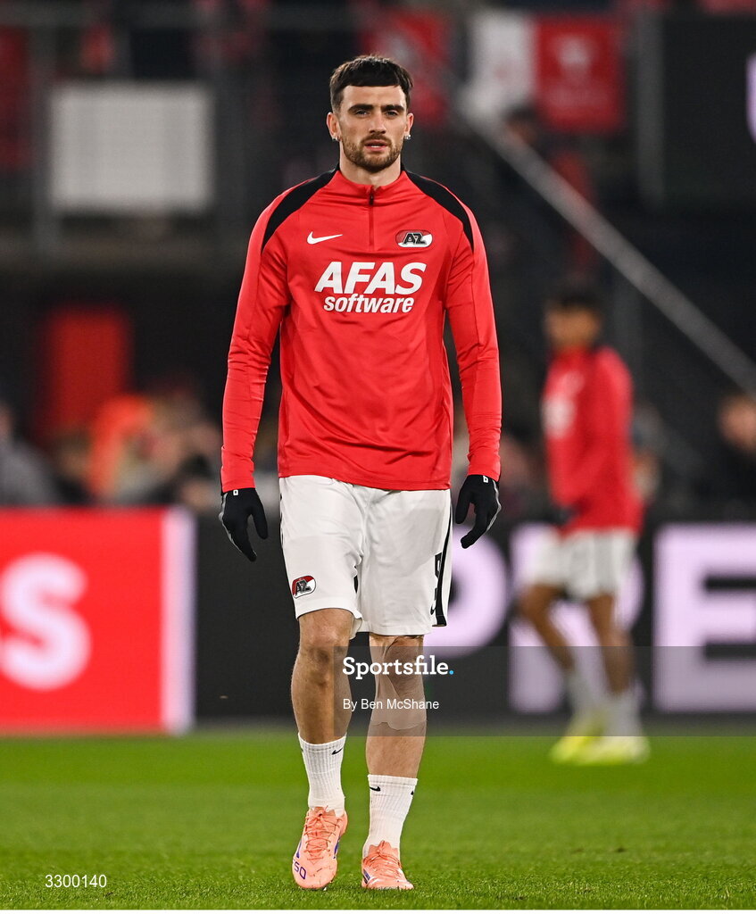 27 November 2025; Troy Parrott of AZ Alkmaar before the UEFA Conference League 2025/26 league phase match between AZ Alkmaar and Shelbourne at AFAS Stadion in Alkmaar, Netherlands. Photo by Ben McShane/Sportsfile