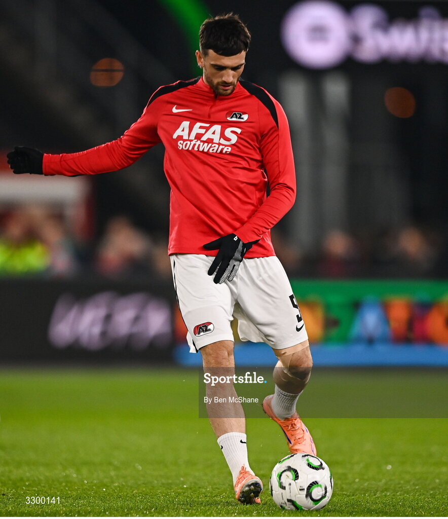 27 November 2025; Troy Parrott of AZ Alkmaar before the UEFA Conference League 2025/26 league phase match between AZ Alkmaar and Shelbourne at AFAS Stadion in Alkmaar, Netherlands. Photo by Ben McShane/Sportsfile