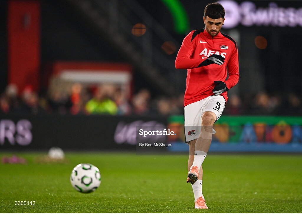 27 November 2025; Troy Parrott of AZ Alkmaar before the UEFA Conference League 2025/26 league phase match between AZ Alkmaar and Shelbourne at AFAS Stadion in Alkmaar, Netherlands. Photo by Ben McShane/Sportsfile