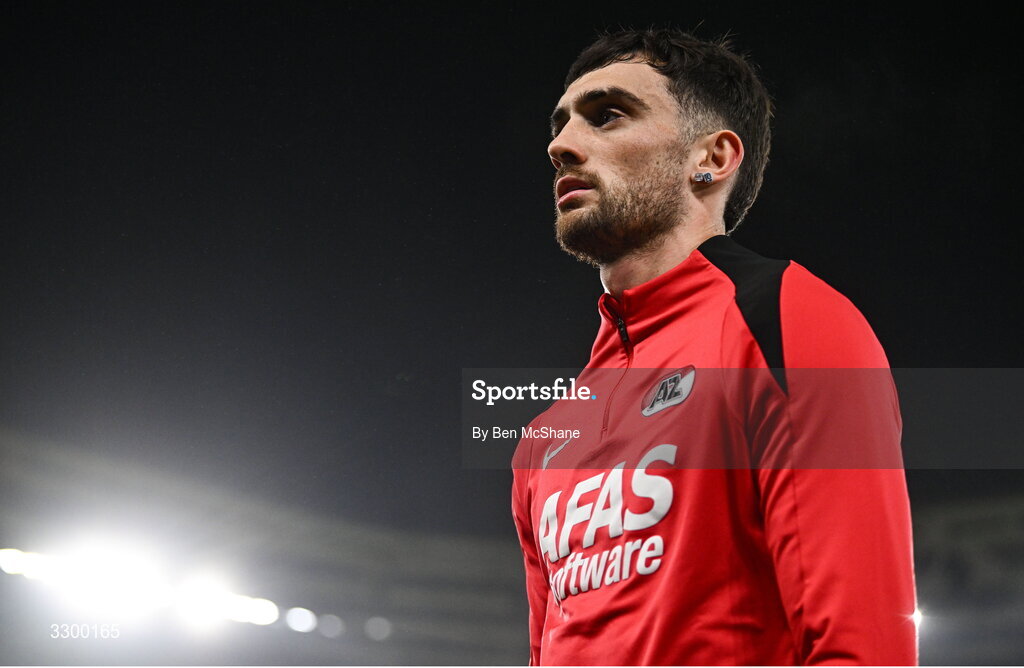 27 November 2025; Troy Parrott of AZ Alkmaar before the UEFA Conference League 2025/26 league phase match between AZ Alkmaar and Shelbourne at AFAS Stadion in Alkmaar, Netherlands. Photo by Ben McShane/Sportsfile