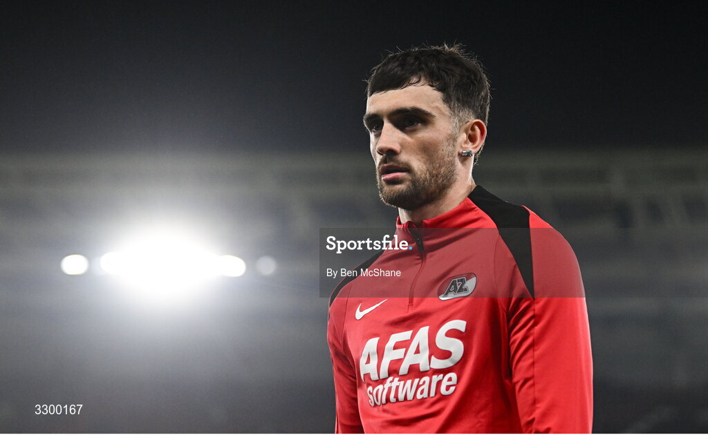 27 November 2025; Troy Parrott of AZ Alkmaar before the UEFA Conference League 2025/26 league phase match between AZ Alkmaar and Shelbourne at AFAS Stadion in Alkmaar, Netherlands. Photo by Ben McShane/Sportsfile