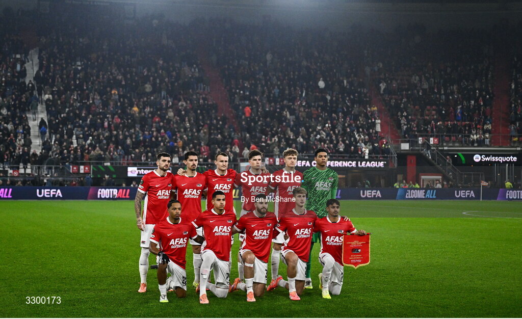 27 November 2025; The AZ Alkmaar team before the UEFA Conference League 2025/26 league phase match between AZ Alkmaar and Shelbourne at AFAS Stadion in Alkmaar, Netherlands. Photo by Ben McShane/Sportsfile