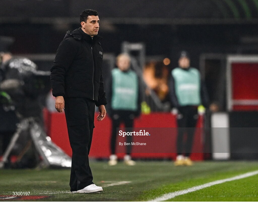27 November 2025; AZ Alkmaar head coach Maarten Martens during the UEFA Conference League 2025/26 league phase match between AZ Alkmaar and Shelbourne at AFAS Stadion in Alkmaar, Netherlands. Photo by Ben McShane/Sportsfile