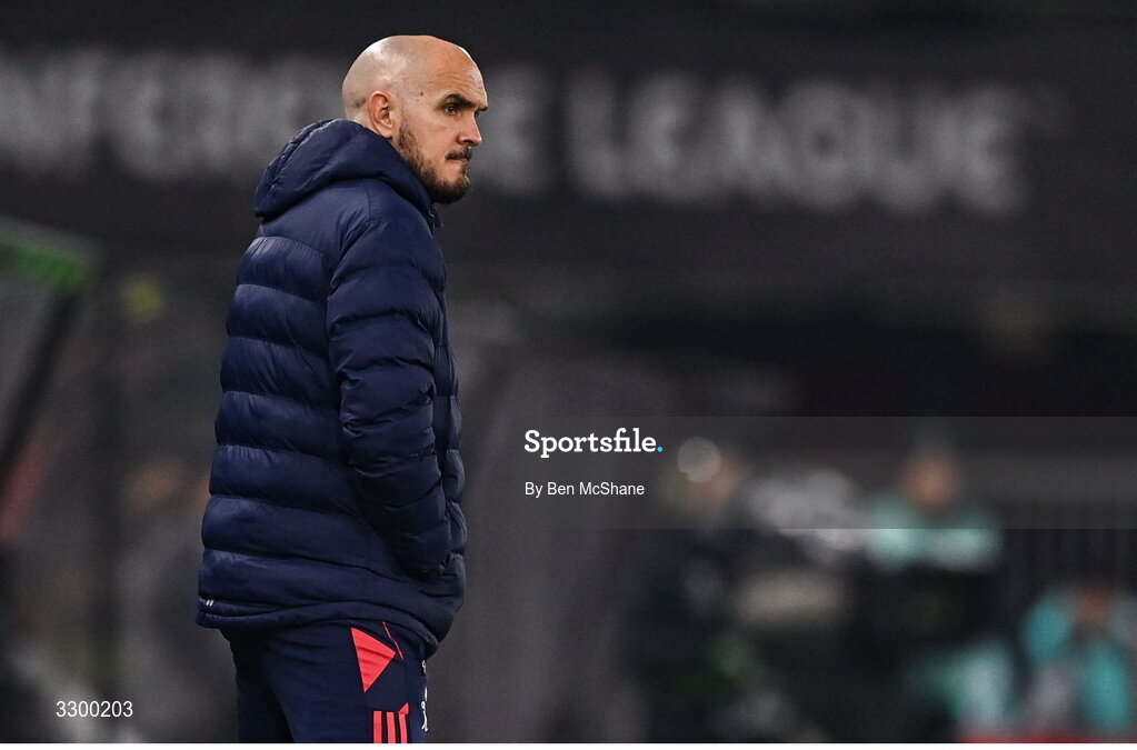 27 November 2025; Shelbourne head coach Joey O'Brien during the UEFA Conference League 2025/26 league phase match between AZ Alkmaar and Shelbourne at AFAS Stadion in Alkmaar, Netherlands. Photo by Ben McShane/Sportsfile
