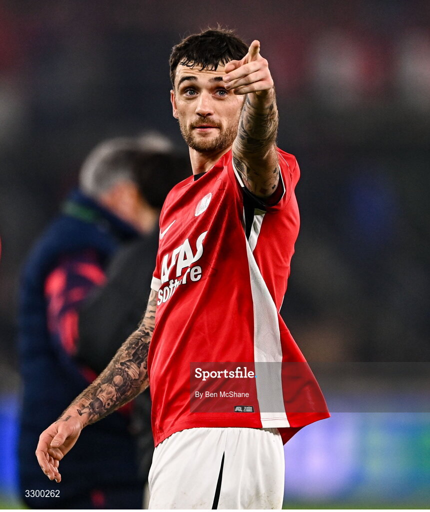 27 November 2025; Troy Parrott of AZ Alkmaar after the UEFA Conference League 2025/26 league phase match between AZ Alkmaar and Shelbourne at AFAS Stadion in Alkmaar, Netherlands. Photo by Ben McShane/Sportsfile