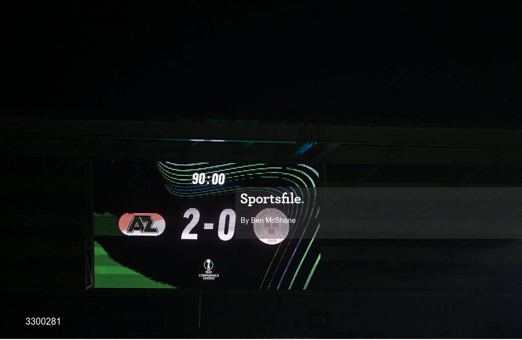 27 November 2025; A general view of the scoreboard after the UEFA Conference League 2025/26 league phase match between AZ Alkmaar and Shelbourne at AFAS Stadion in Alkmaar, Netherlands. Photo by Ben McShane/Sportsfile