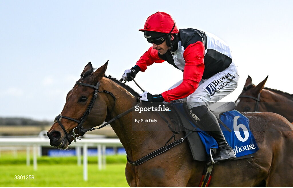 29 November 2025; Jimmy Du Seuil, with Patrick Mullins up, on their way to winning the SIS Supporting Irish Racing Beginners Steeplechase during day one of the Fairyhouse Winter Festival at Fairyhouse Racecourse in Meath. Photo by Seb Daly/Sportsfile