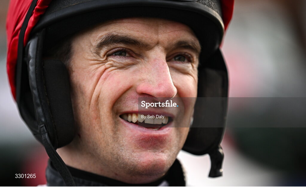 29 November 2025; Jockey Patrick Mullins after riding Jimmy Du Seuil to victory in the SIS Supporting Irish Racing Beginners Steeplechase, to claim his 900th career win, during day one of the Fairyhouse Winter Festival at Fairyhouse Racecourse in Meath. Photo by Seb Daly/Sportsfile