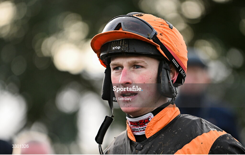 29 November 2025; Jockey Joey Dunne after winning the Race And Stay Irish EBF Mares Handicap Steeplechase on True Testimony during day one of the Fairyhouse Winter Festival at Fairyhouse Racecourse in Meath. Photo by Seb Daly/Sportsfile