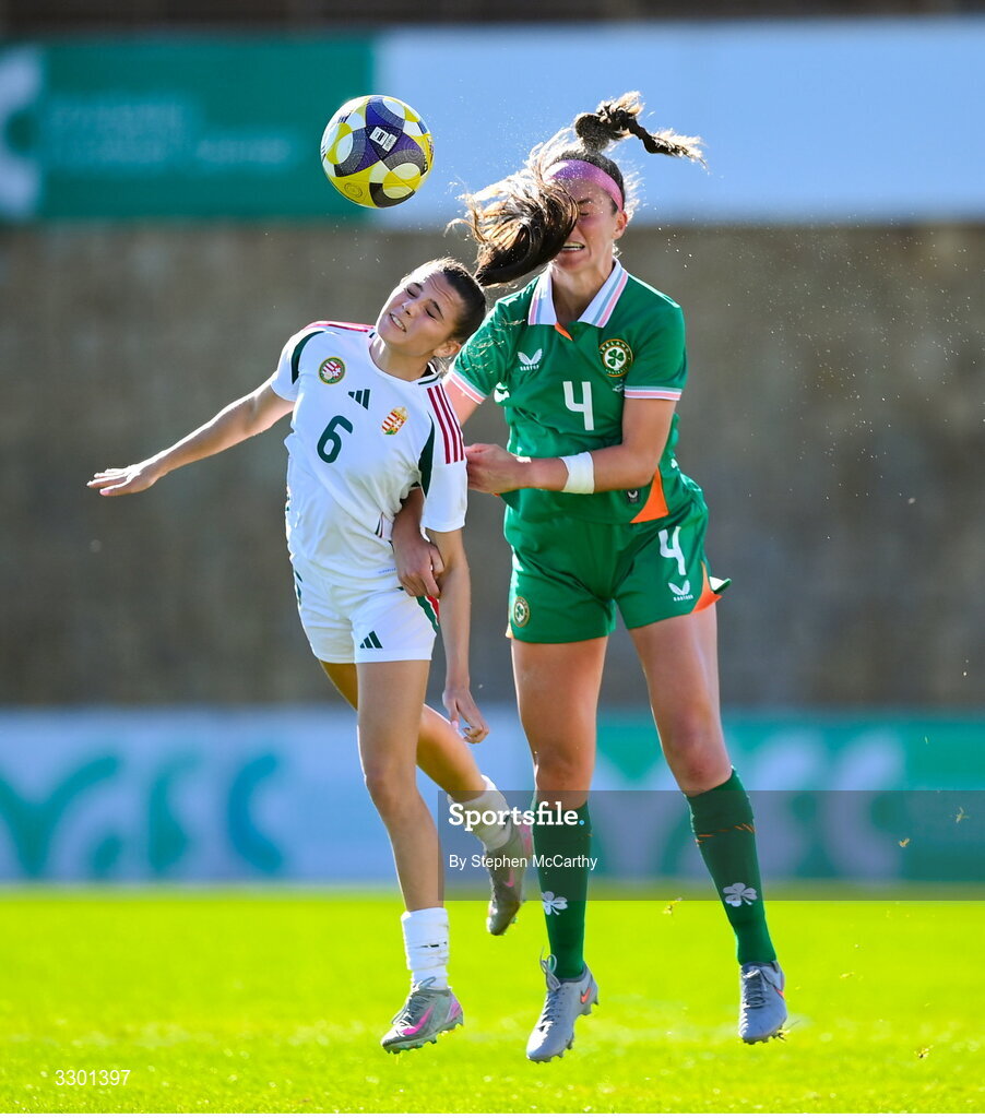 29 November 2025; Borbala Vincze of Hungary in action against Caitlin Hayes of Republic of Ireland during the women's international friendly match between Republic of Ireland and Hungary at Marbella Football Centre in Marbella, Spain. Photo by Stephen McCarthy/Sportsfile