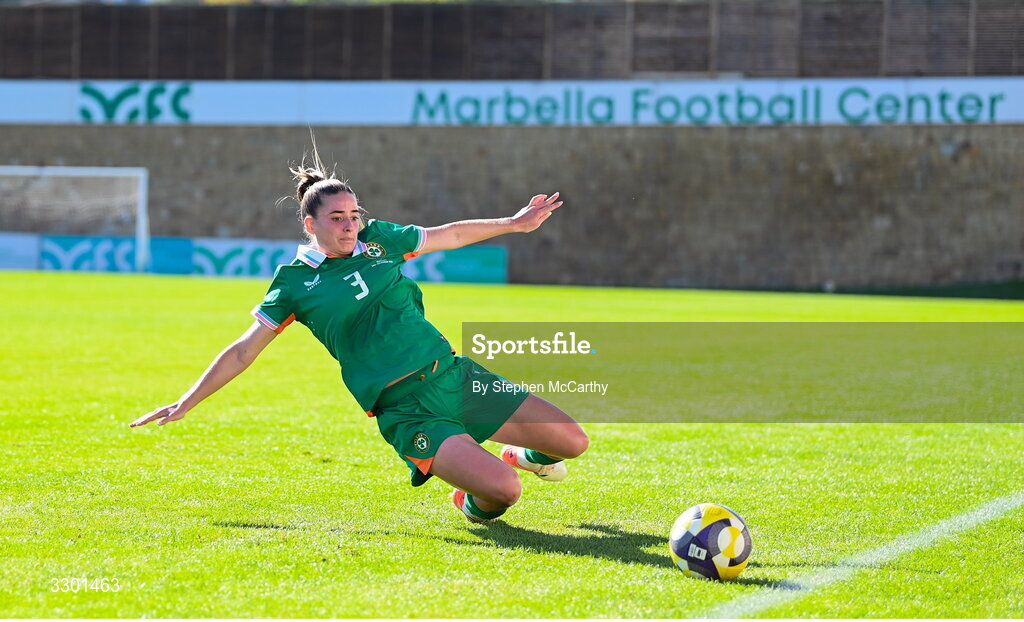 29 November 2025; Chloe Mustaki of Republic of Ireland during the women's international friendly match between Republic of Ireland and Hungary at Marbella Football Centre in Marbella, Spain. Photo by Stephen McCarthy/Sportsfile