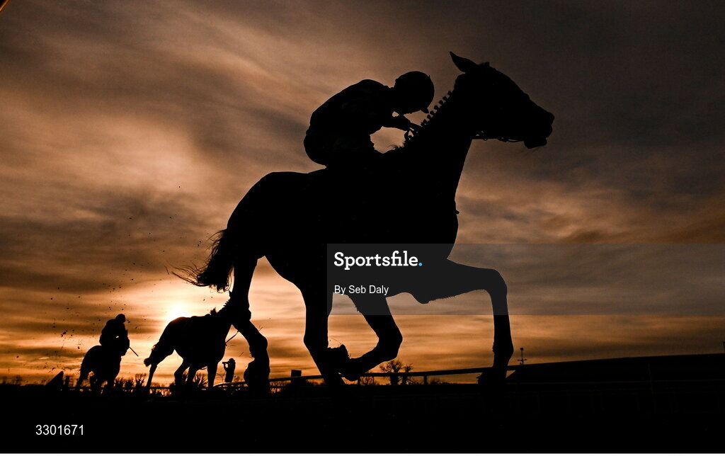 29 November 2025; Billy Lee Swagger, with Tiernan Power Roche up, on their way to winning the Summerhill Meath Senior Football Champions 2025 Handicap Hurdle during day one of the Fairyhouse Winter Festival at Fairyhouse Racecourse in Meath. Photo by Seb Daly/Sportsfile