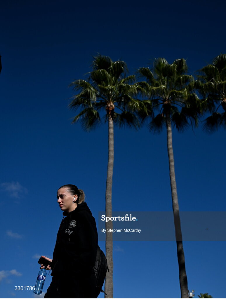 29 November 2025; Abbie Larkin of Republic of Ireland arrives for the women's international friendly match between Republic of Ireland and Hungary at Marbella Football Centre in Marbella, Spain. Photo by Stephen McCarthy/Sportsfile