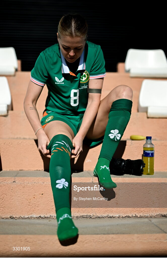 29 November 2025; Ruesha Littlejohn of Republic of Ireland prepares before the women's international friendly match between Republic of Ireland and Hungary at Marbella Football Centre in Marbella, Spain. Photo by Stephen McCarthy/Sportsfile