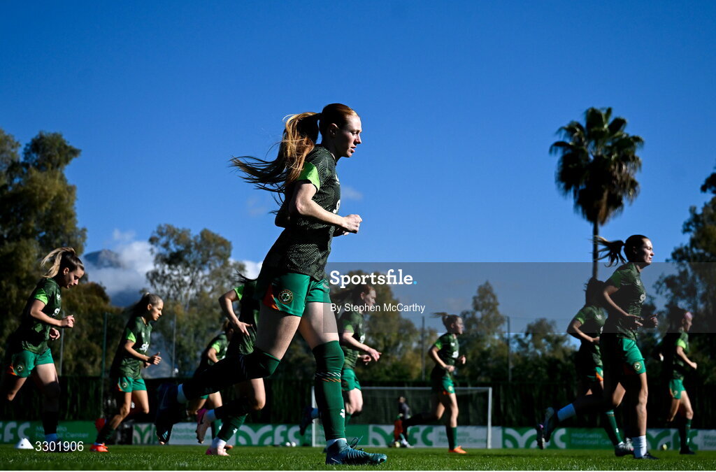 29 November 2025; Kelly Brady of Republic of Ireland warms up before the women's international friendly match between Republic of Ireland and Hungary at Marbella Football Centre in Marbella, Spain. Photo by Stephen McCarthy/Sportsfile
