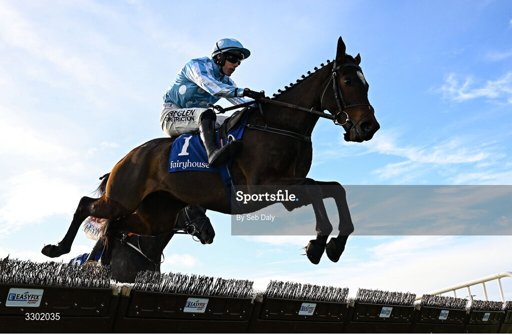 29 November 2025; Murcia, with Brian Hayes up, during the Jack McInerney Memorial Hurdle on day one of the Fairyhouse Winter Festival at Fairyhouse Racecourse in Meath. Photo by Seb Daly/Sportsfile
