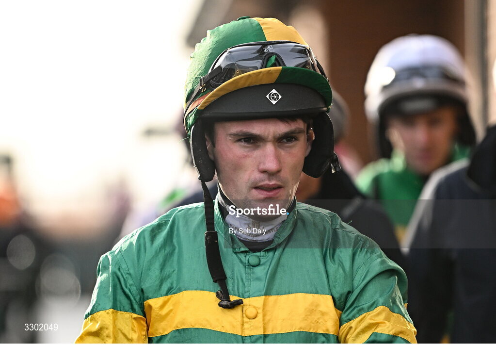 29 November 2025; Jockey Simon Torrens before the SIS Supporting Irish Racing Beginners Steeplechase during day one of the Fairyhouse Winter Festival at Fairyhouse Racecourse in Meath. Photo by Seb Daly/Sportsfile