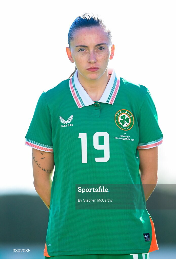 29 November 2025; Abbie Larkin of Republic of Ireland before the women's international friendly match between Republic of Ireland and Hungary at Marbella Football Centre in Marbella, Spain. Photo by Stephen McCarthy/Sportsfile