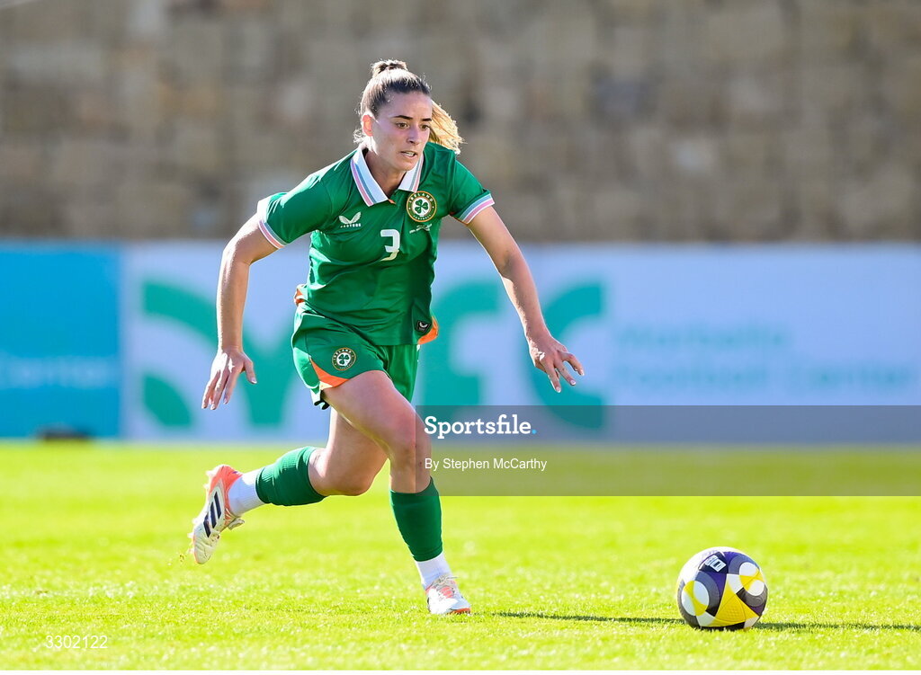 29 November 2025; Chloe Mustaki of Republic of Ireland during the women's international friendly match between Republic of Ireland and Hungary at Marbella Football Centre in Marbella, Spain. Photo by Stephen McCarthy/Sportsfile
